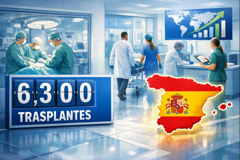España registró 6.335 trasplantes de órganos en 2025, superando los 6.300 por segundo año consecutivo y manteniendo la tasa de 129 procedimientos por millón de población (p.m.p.). La cifra, presentada el 15 de enero por la ministra Mónica García y la ONT, refleja 2.547 donantes fallecidos (51,9 p.m.p.) y 408 vivos. Líder mundial pese a ligero descenso del 2% vs récord 2024 (6.464).